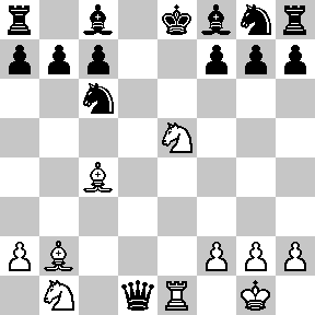 8. e5 d6 9. Re1 dxe5 10. Nxe5 Qxd1